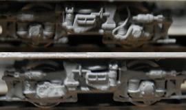 台車の転回防止の突起をカットして車高を低く、デッキ部を一旦