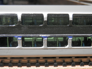 凸部分はプラ板で作ると、強度不足+セメントボンドによる軟化が避けられないので、2410/1810系のクーラーセキの余剰パーツを加工(穴はプラ板で後に塞ぎます)。
